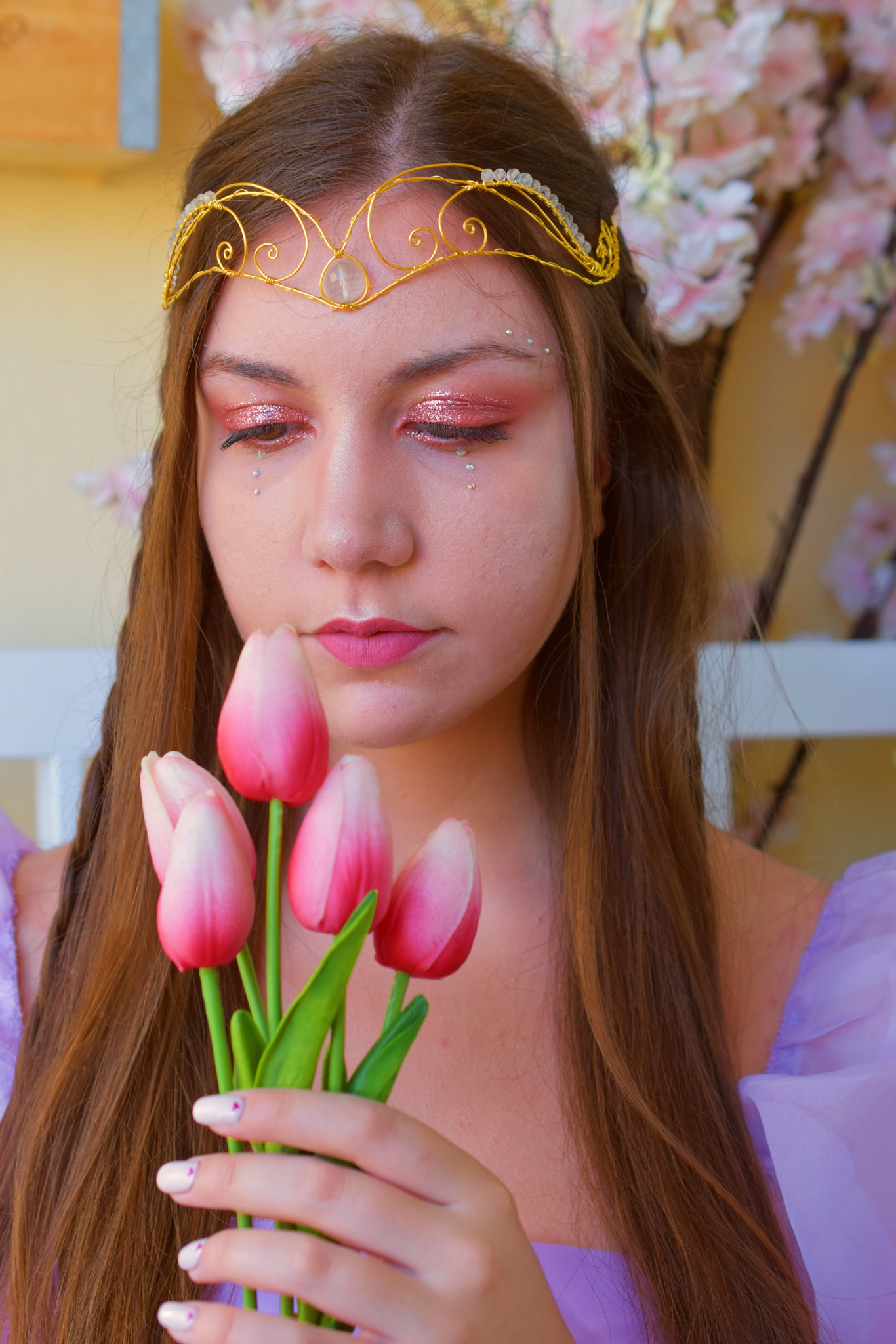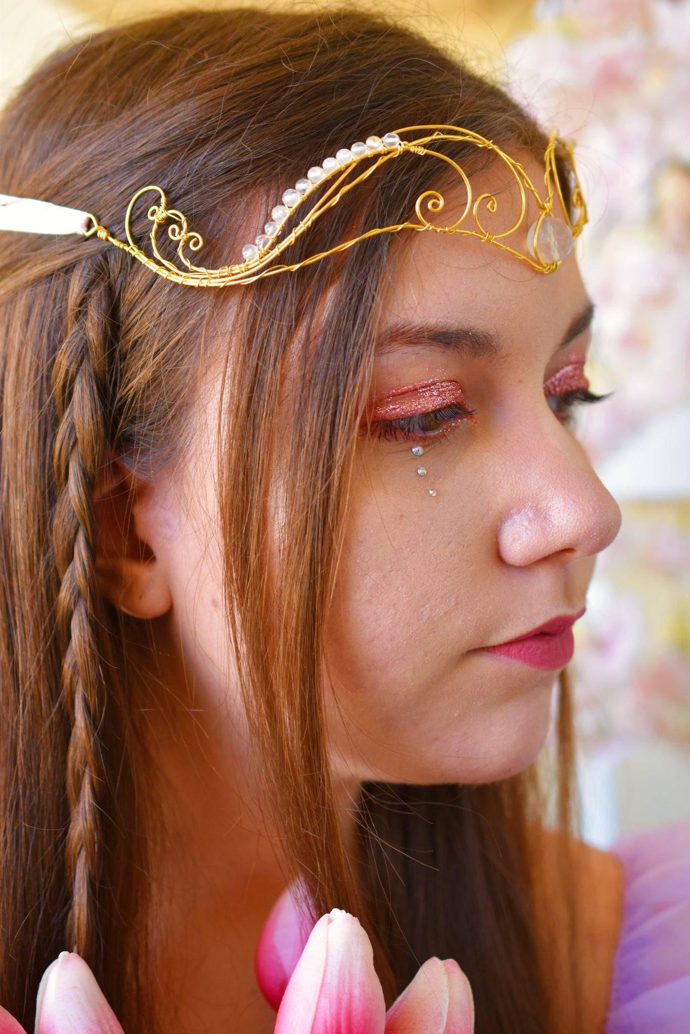 Οι νεράιδες της Αυγής βάφουν κάθε πρωί τον ουρανό με τα πιο ονειρεμένα χρώματα, συνήθως όμως το ροζ υπερτερεί. Γι' αυτό και η τιάρα που φορούν έχει αυτό το χρώμα μαζί με τον κυματισμό των σύννεφων του πρωινού ουρανού!