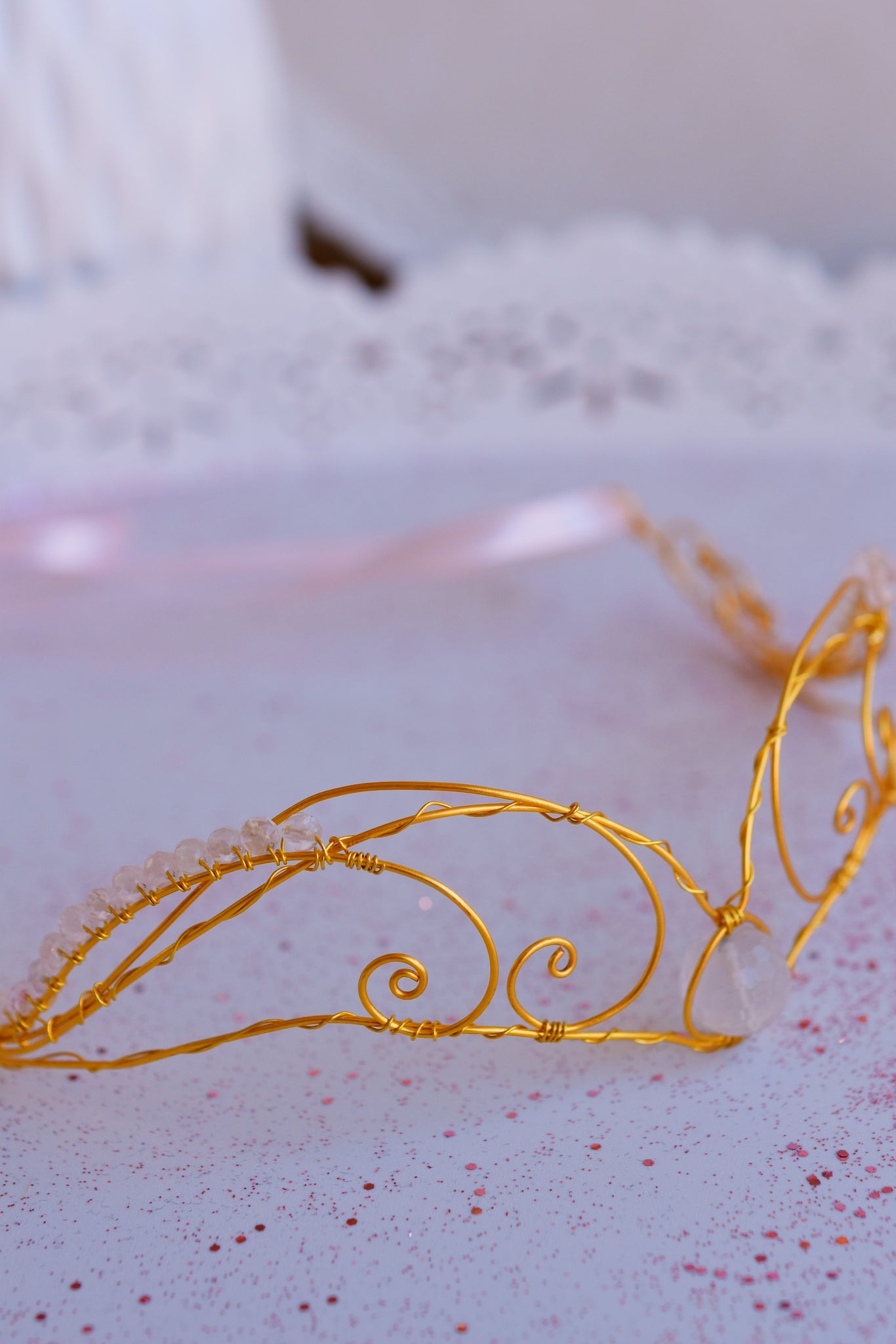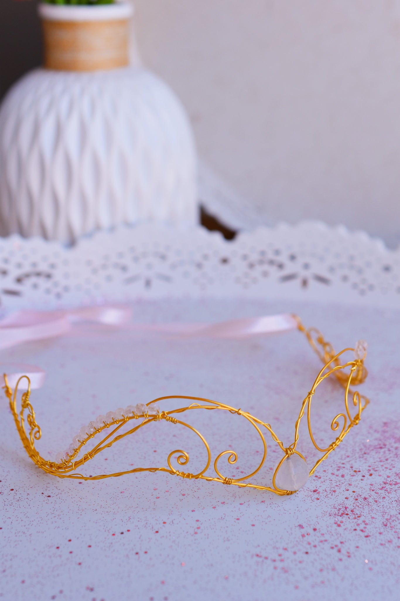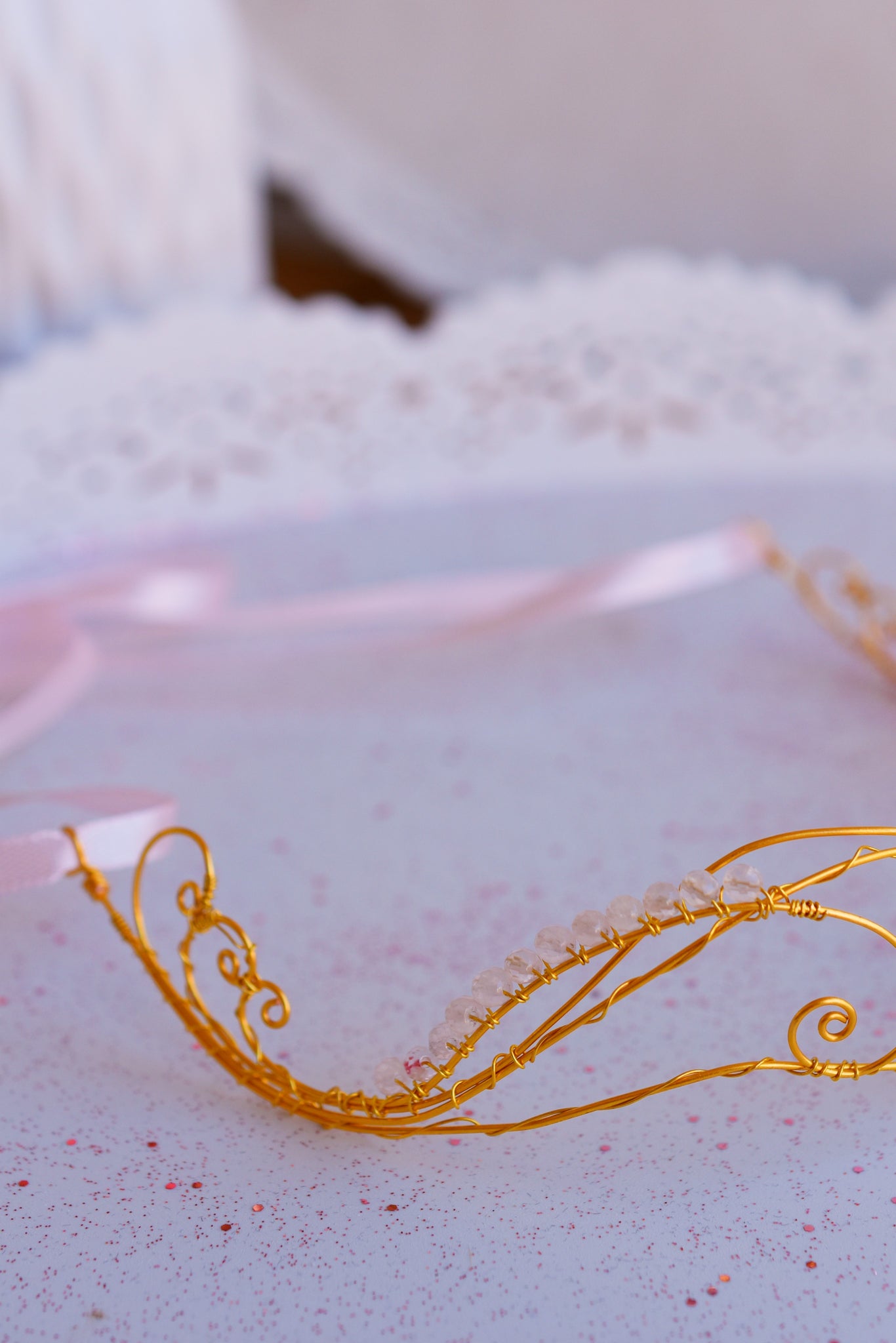 - Υλικά: επίχρυσο ή επάργυρο σύρμα, ροζ σατέν κορδέλα