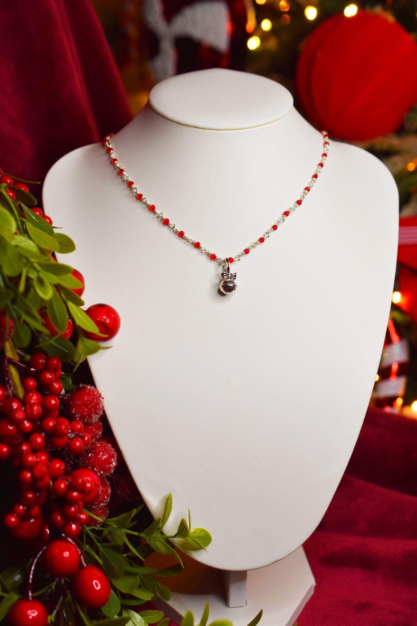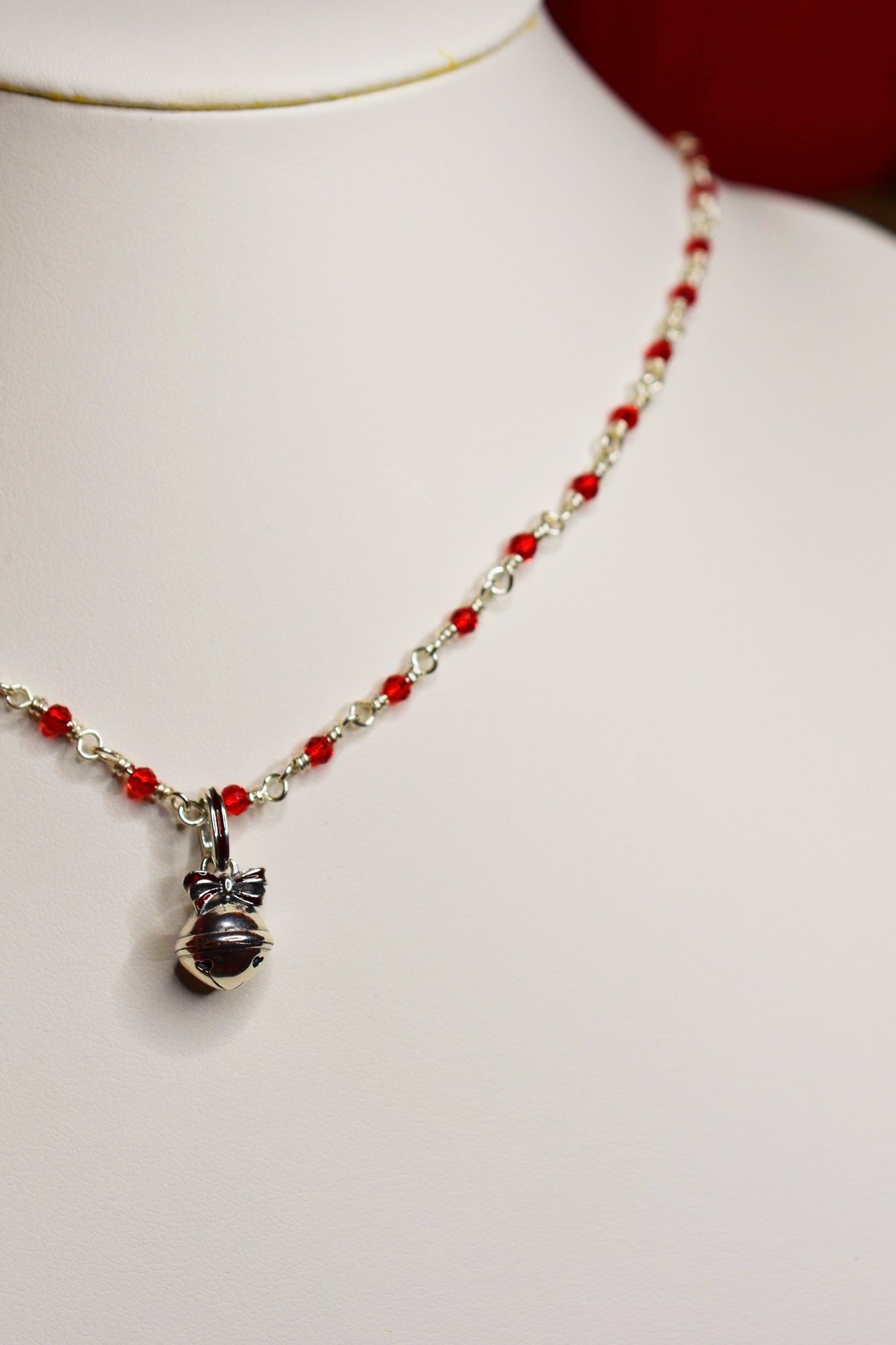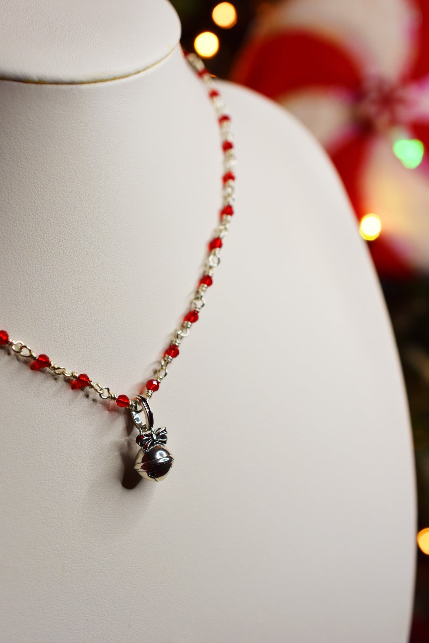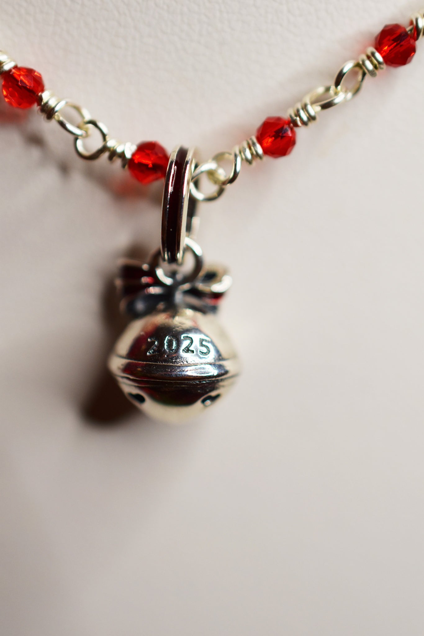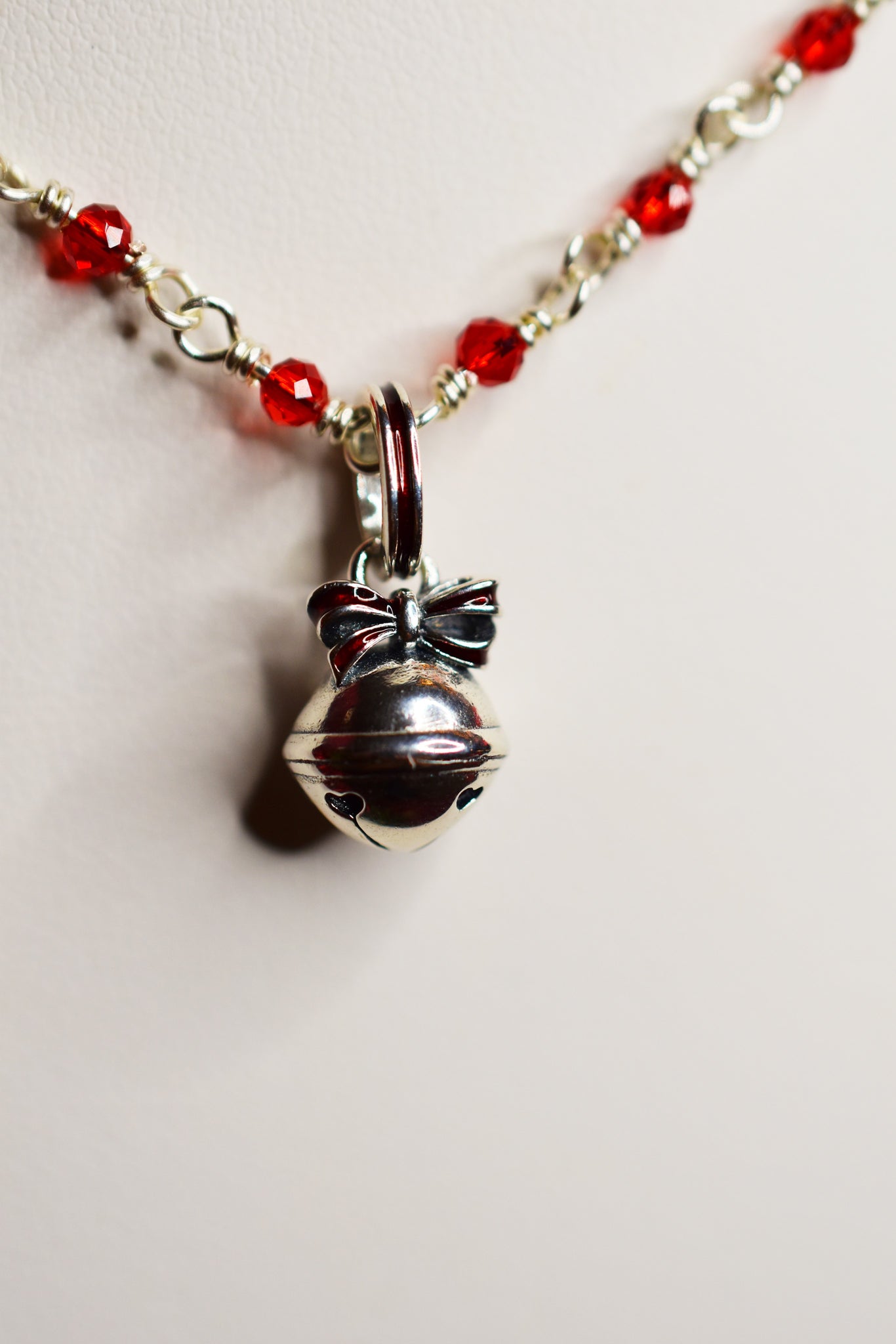 - Υλικά: επάργυρο σύρμα-αλυσίδα ροζάριο πλεγμένη στο χέρι, κρεμαστό κουδουνάκι ασημένιο 925
