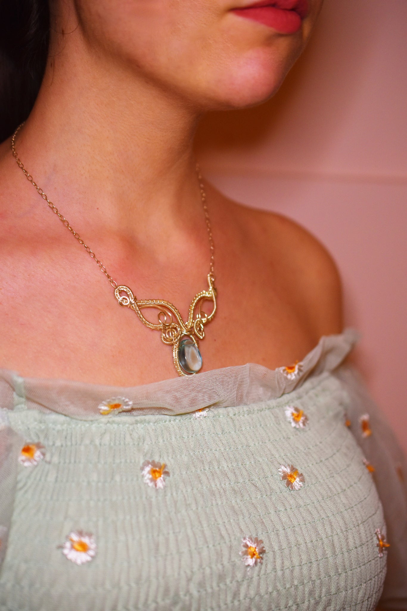 Πραγματικά ξεχωριστό κομμάτι στη συλλογή! Χρειαστήκαμε την βοήθεια των ξωτικών για αυτό το κολιέ και νομίζουμε πως αυτό φαίνεται στο αποτέλεσμα! Έχει τη φινέτσα και την λάμψη τους!
