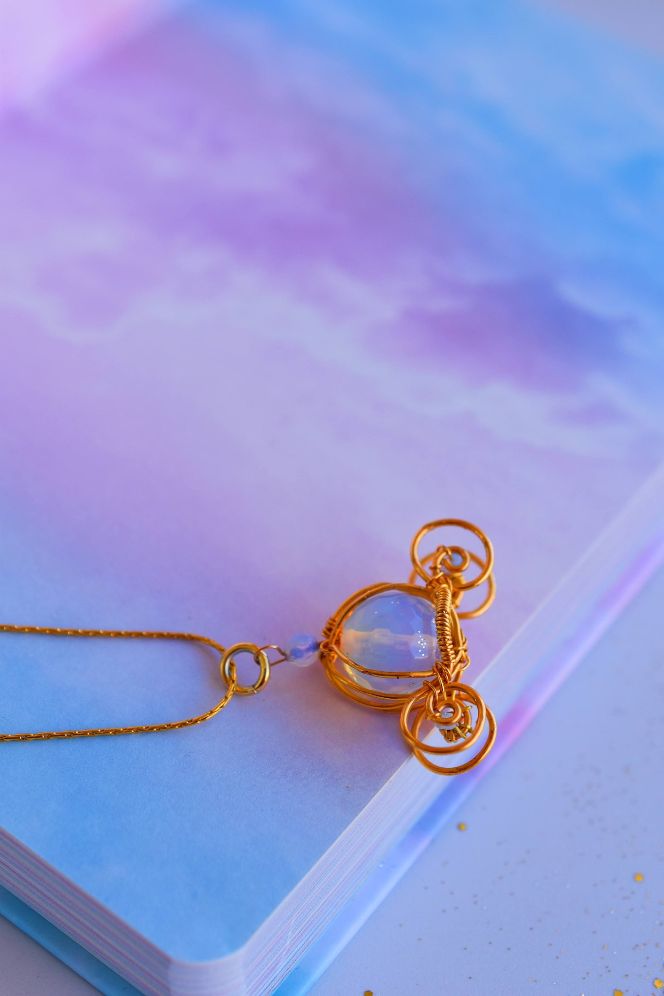 Πέτρες: Φεγγαρόπετρα (κεντρική και κορυφή), κρύσταλλο (στα πλαϊνά)