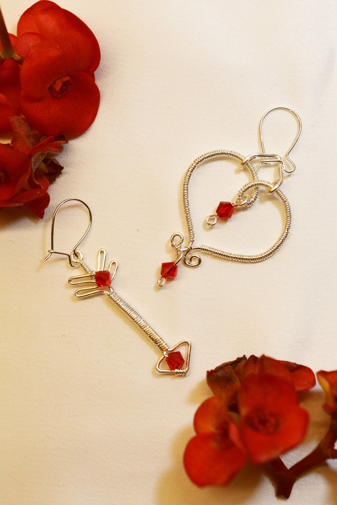 Μια αγνή καρδιά και ένα μαγικό βέλος αποτελούν το σημάδι του θεού Έρωτα. Εμείς τα στολίσαμε με κόκκινες πέτρες αγάπης και τώρα λαμποκοπούν!