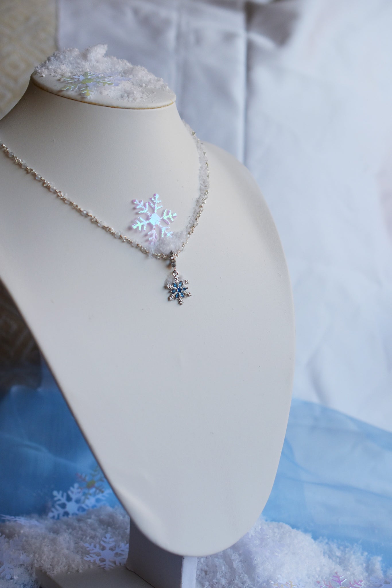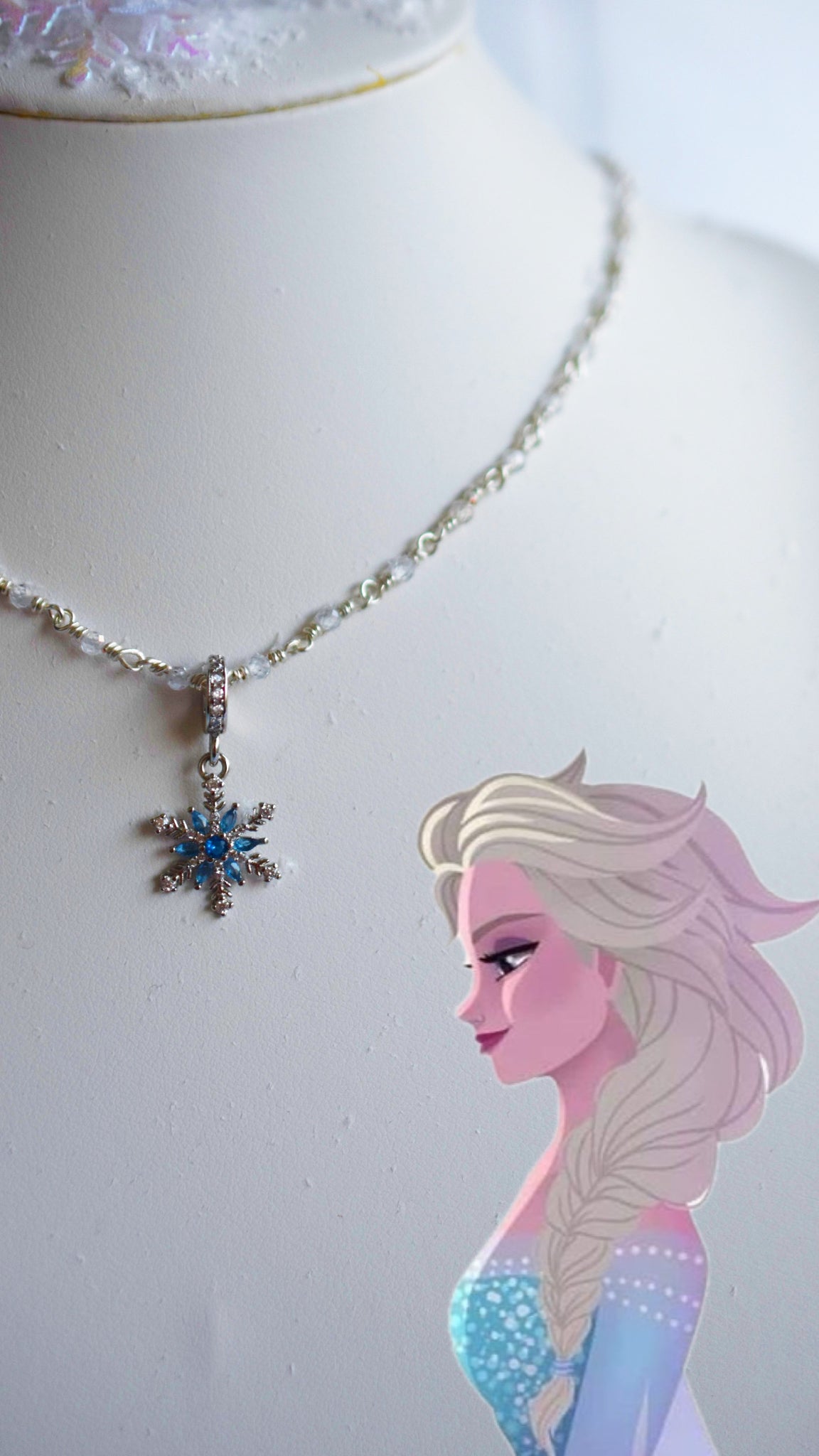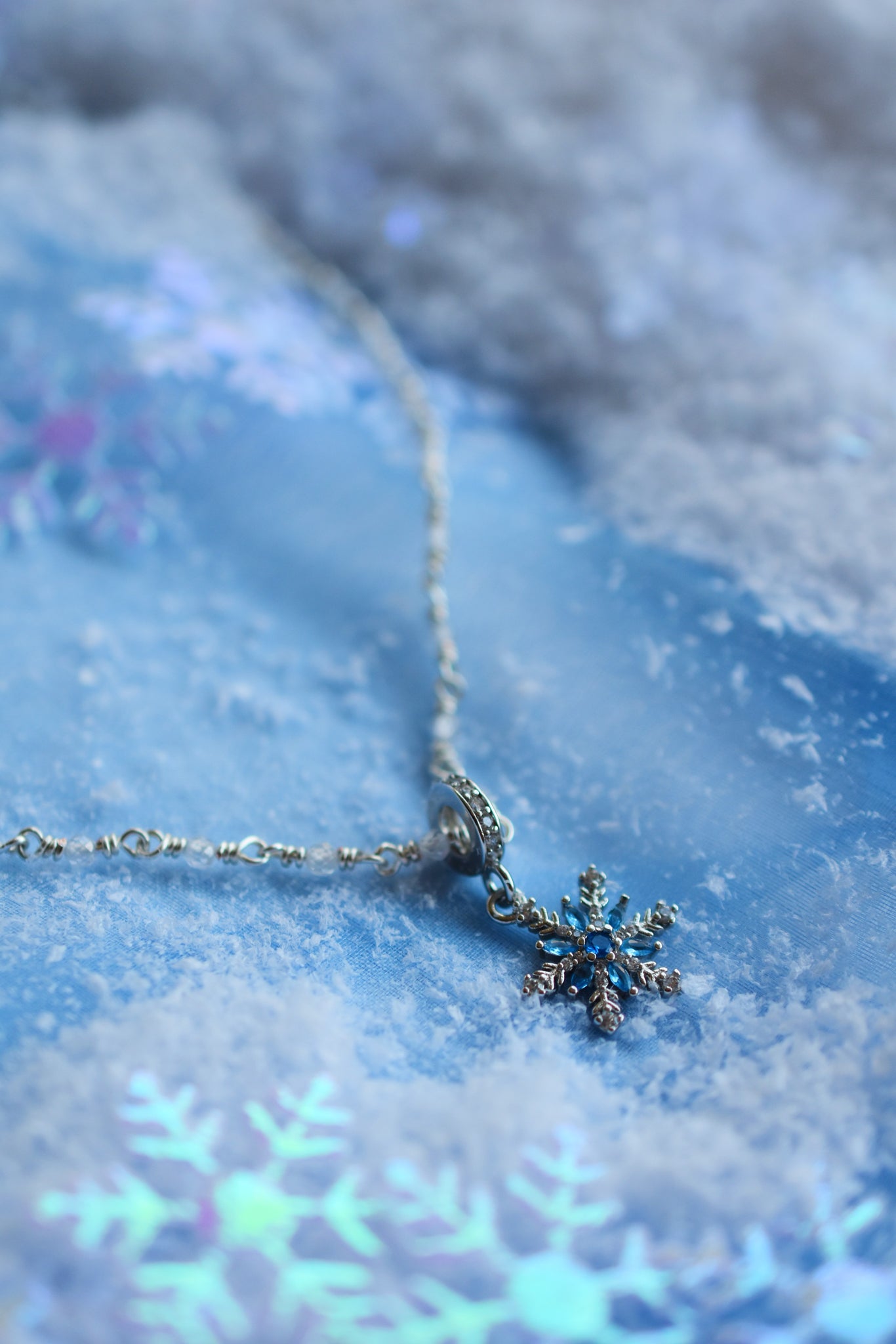 - Υλικά: επάργυρο σύρμα-αλυσίδα ροζάριο πλεγμένη στο χέρι, κρεμαστό χιονονιφάδα ασημένιο 925