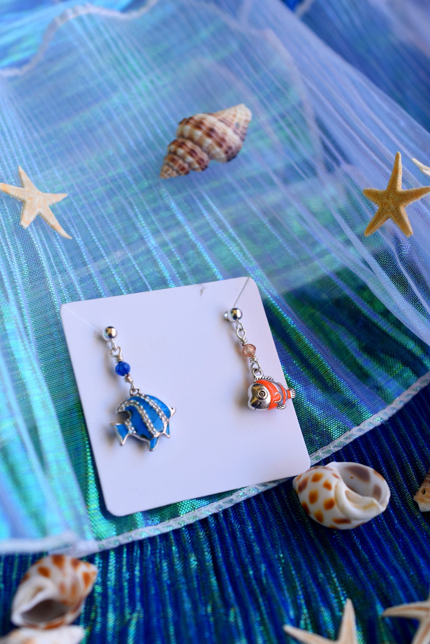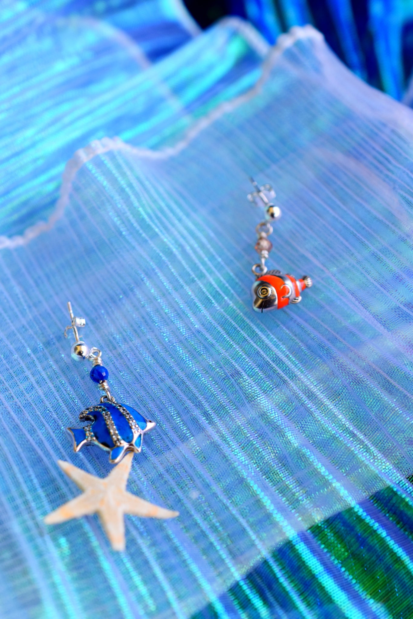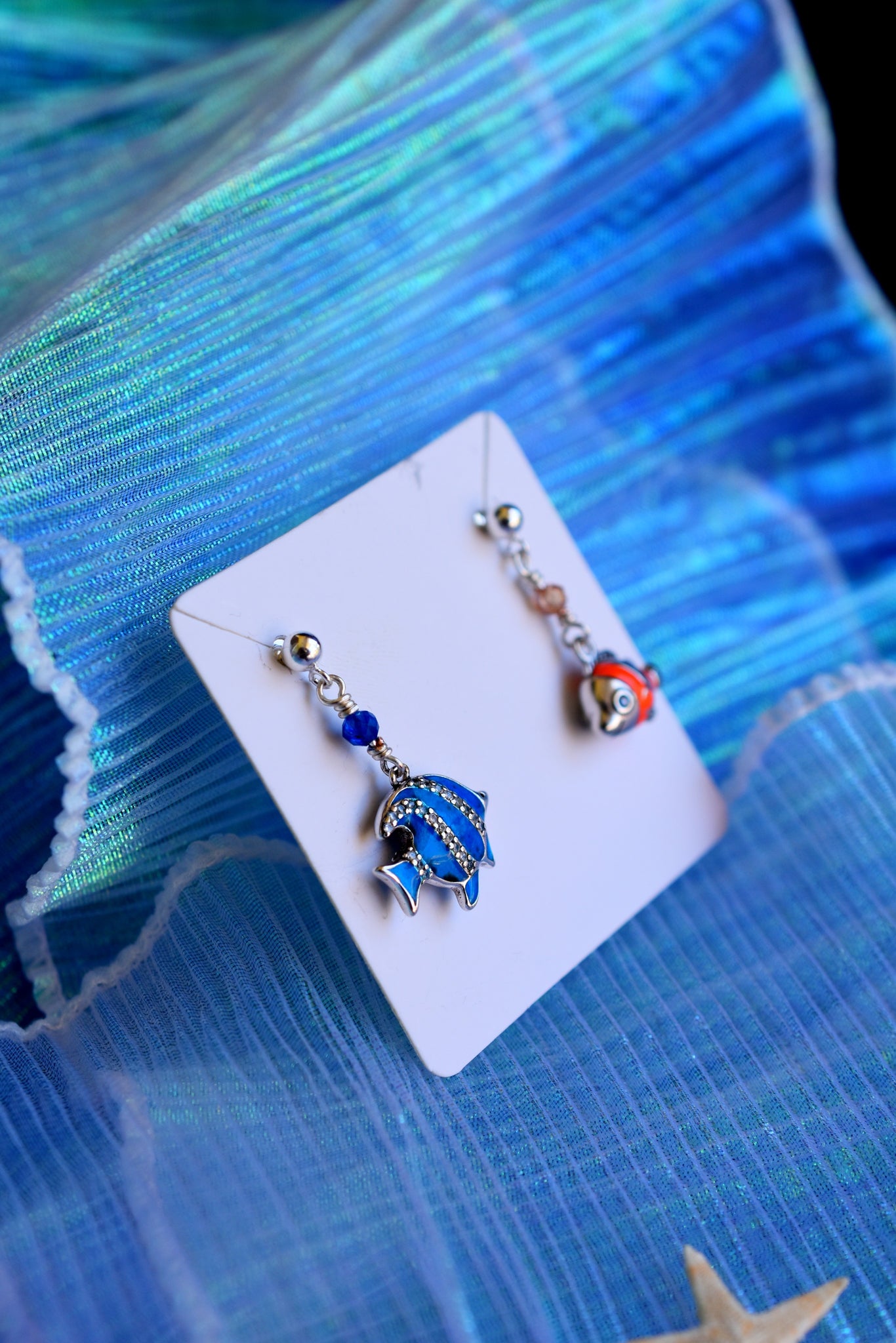 • Υλικά: σκουλαρίκι από ασήμι 925, επάργυρο σύρμα, κρεμαστά ψαράκια από ασήμι 925