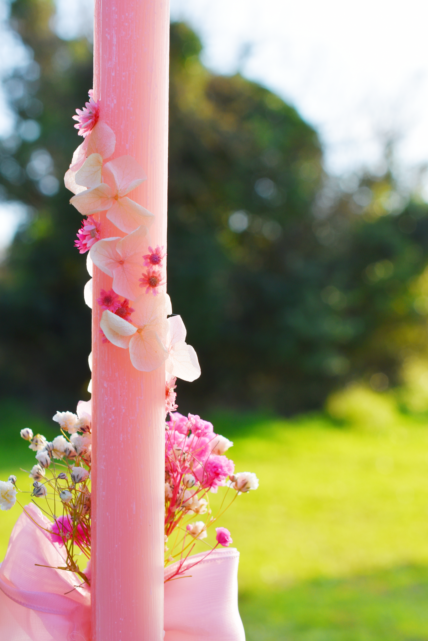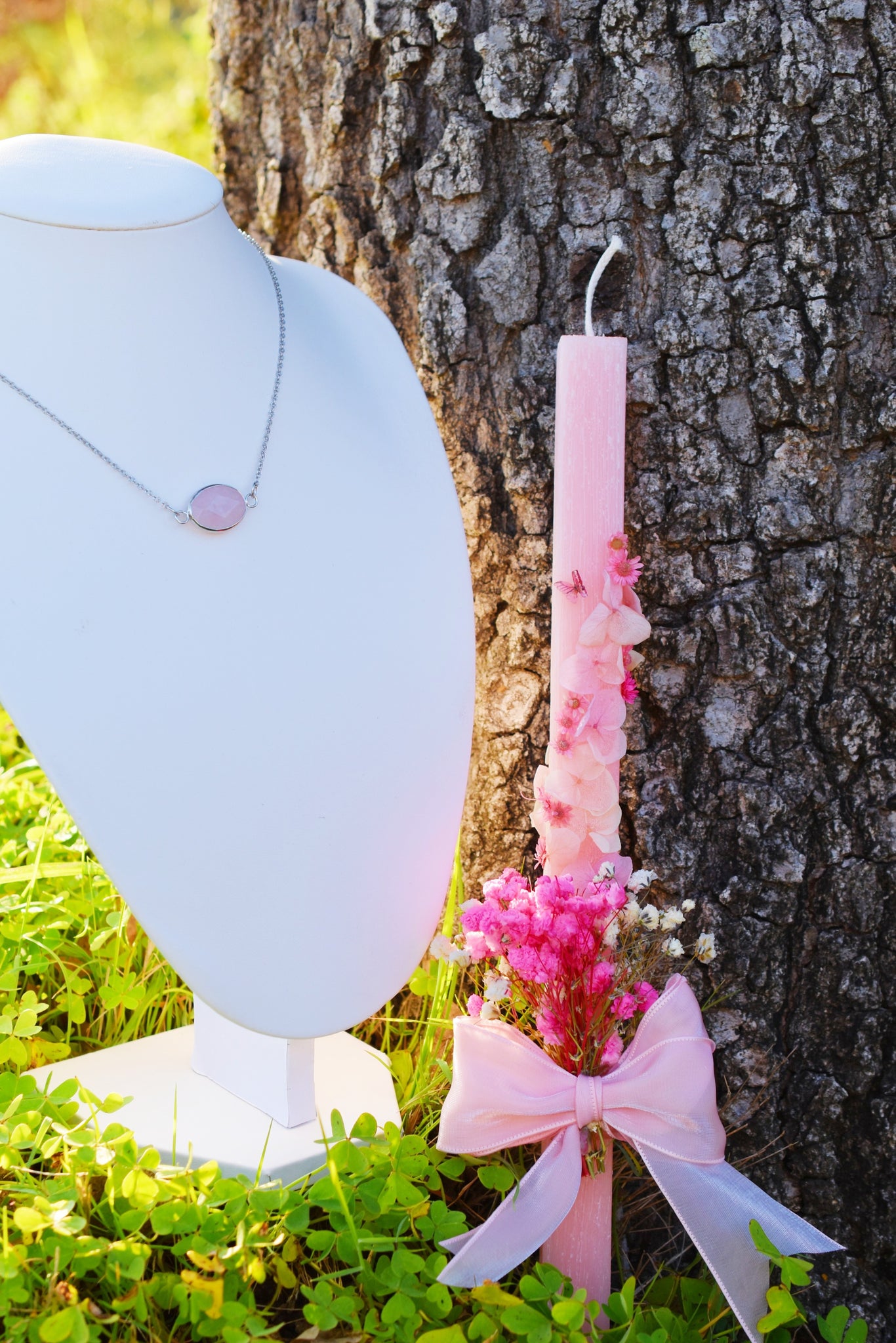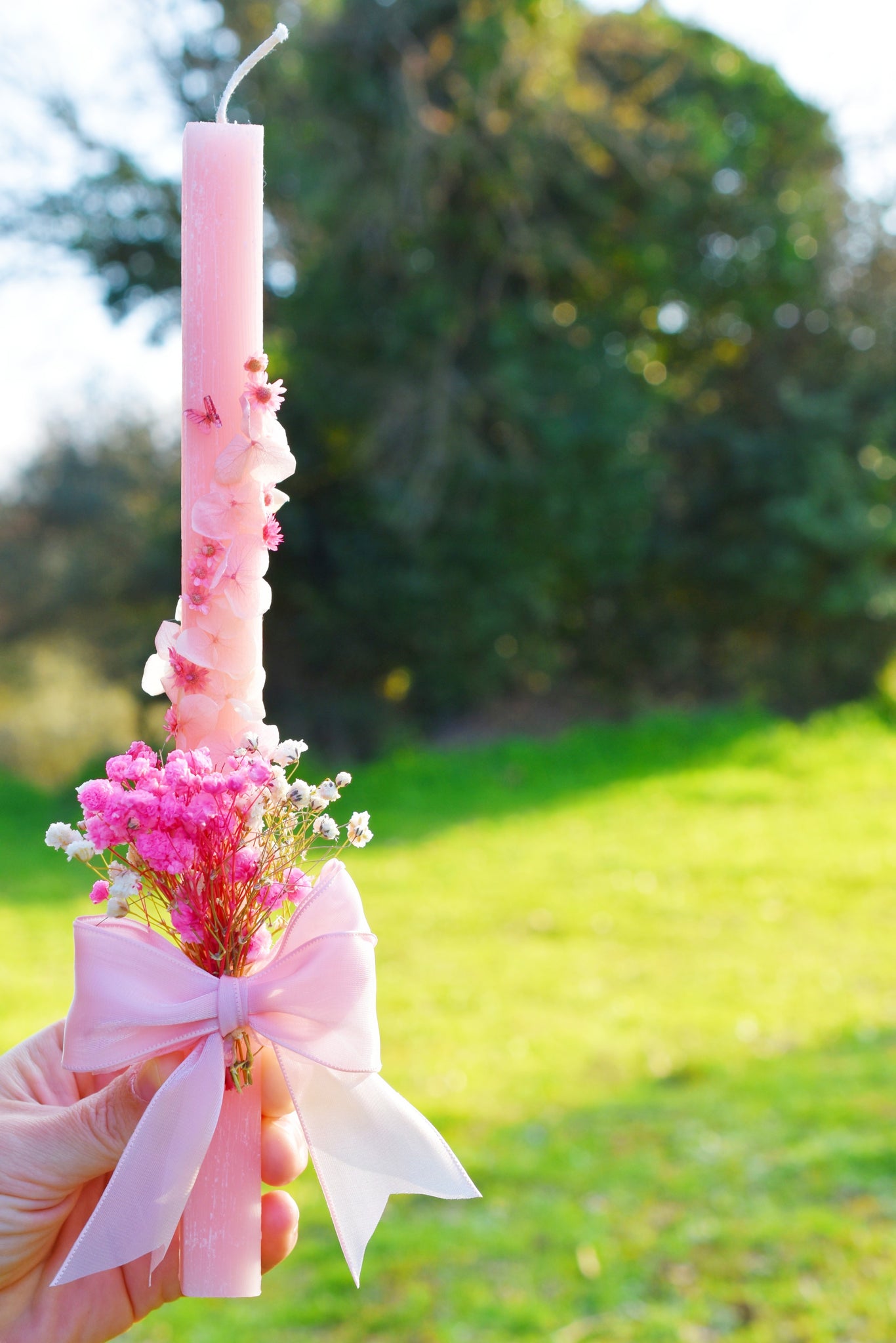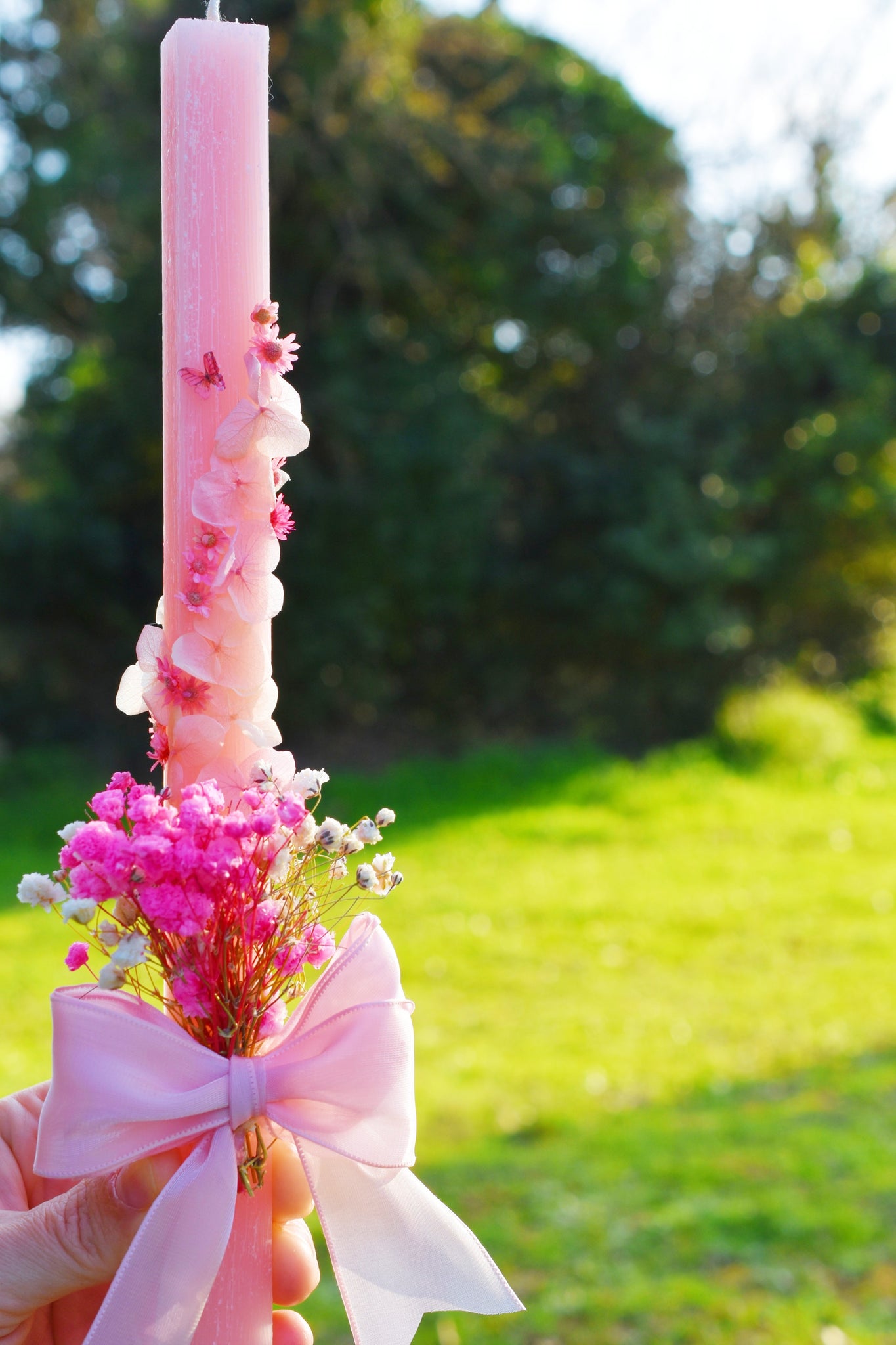 - Υλικά: χειροποίητη αρωματική λαμπάδα 30εκ. με αληθινά αποξηραμένα λουλούδια και κορδέλα