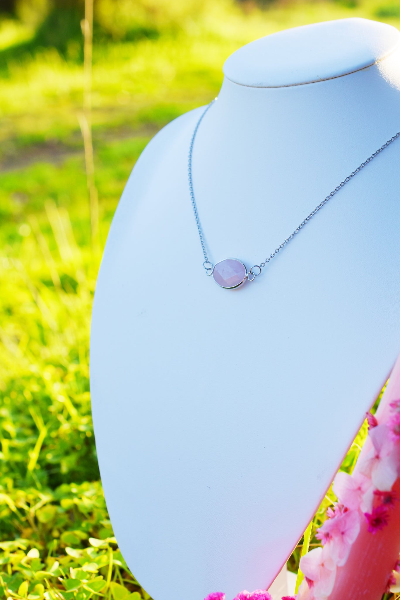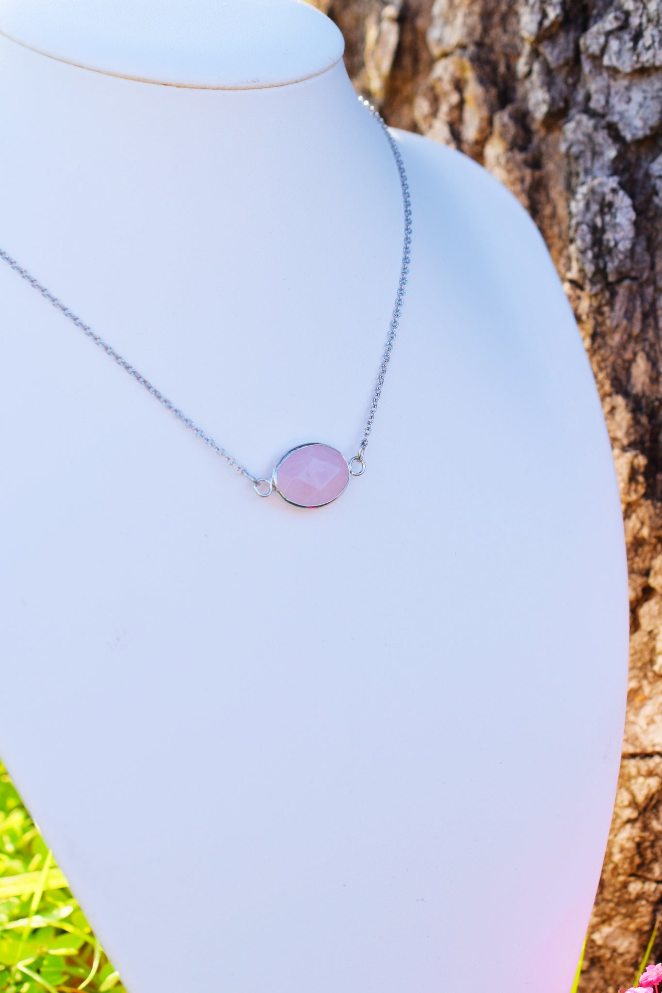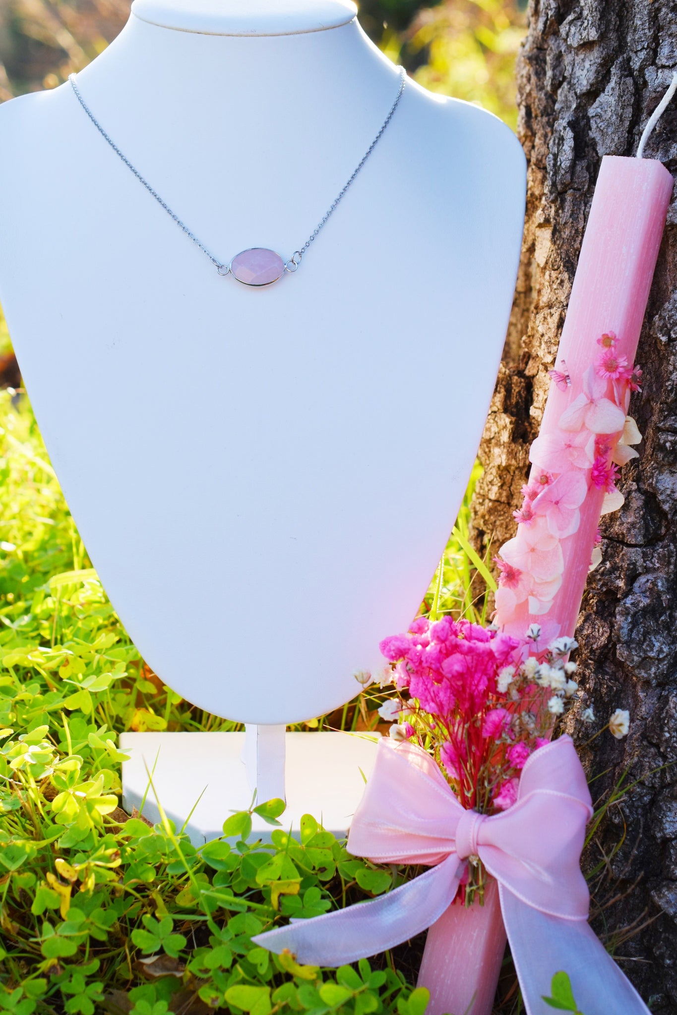 - Κολιέ από ανοξείδωτο ατσάλι και πέτρα χαλαζία