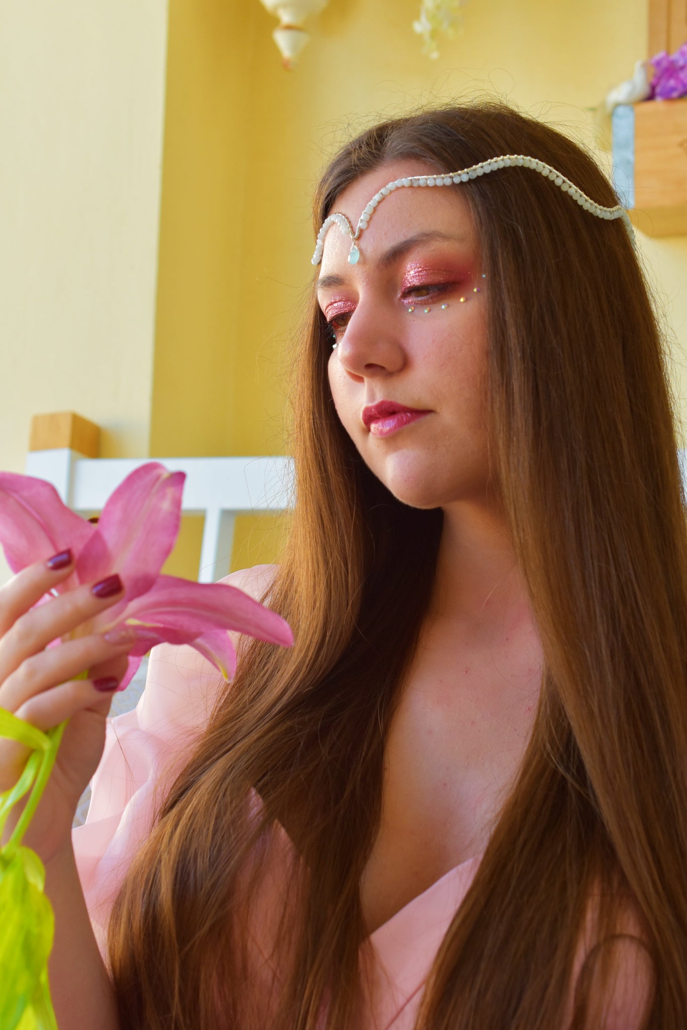 - Πέτρες: λευκές φεγγαρόπετρες, σταγόνα νεφρίτη